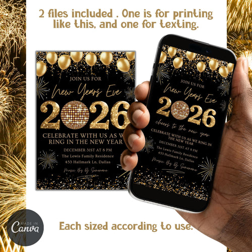2026 New Year's Eve Party Invitation Template (Digital Download)
